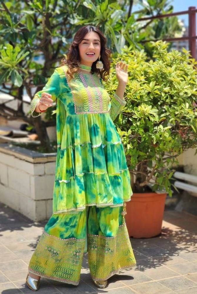 This set includes : Kurta, Sharara, Dupatta